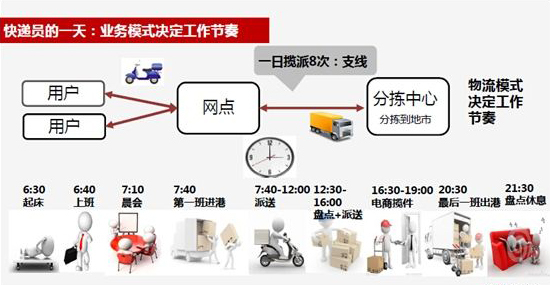 可能我們見到的快遞員更多的是,送貨上門或者在驛站分發(fā)快遞的那種類型。但快遞員一個正常的流程基本上是上面那張圖所展示的。