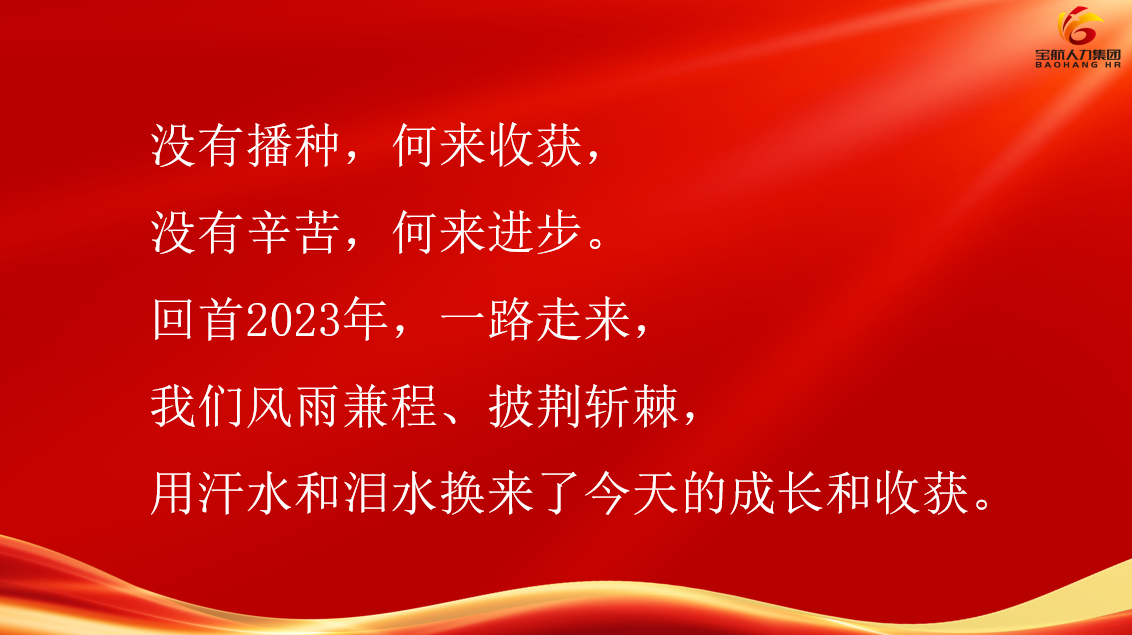 1月26日,寶航人力集團在充滿喜慶祥和的氣氛中成功舉辦了主題為“同心同行·騰飛2024”的年度盛會。此次盛會分為兩個部分,下午是深度全面的年終總結表彰大會,晚上則以豐富多元的藝術表演形式呈現了精彩的迎新年會。這不僅是一次回顧過去、總結經驗的契機,更是展望未來、凝聚力量的重要時刻。