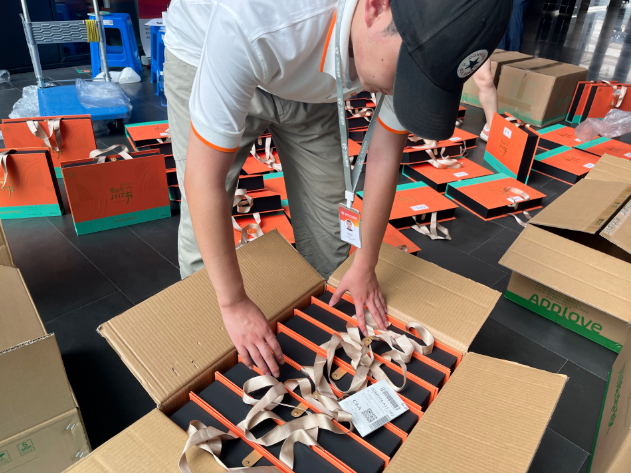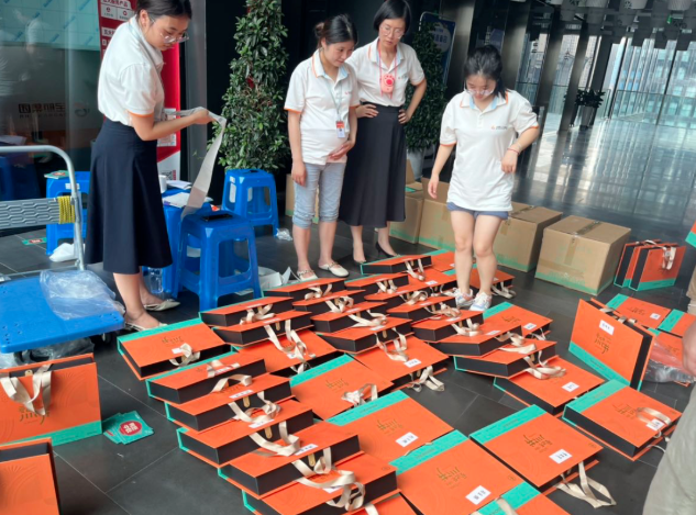 8月26日,公司為大家訂購的中秋月餅早早便到了,因為今年新增了家書環(huán)節(jié),加上那段時間成都高溫限電,所以大家不得不頂著體感45度的高溫,挨個重新打開包裝再次進行包裝。