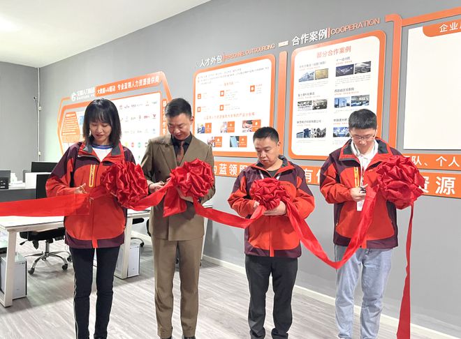 寶航人力集團(tuán)創(chuàng)始人、董事長黃棟(左二),事業(yè)二部總監(jiān)李雪婷(左一),總裁特助王建英(右二),事業(yè)二部BPO項目經(jīng)理趙立章(右一)等人現(xiàn)場參與了開業(yè)儀式。上午11點整,正式舉行剪彩開業(yè)儀式,雙流運(yùn)營部人員共同見證這一歷史時刻。